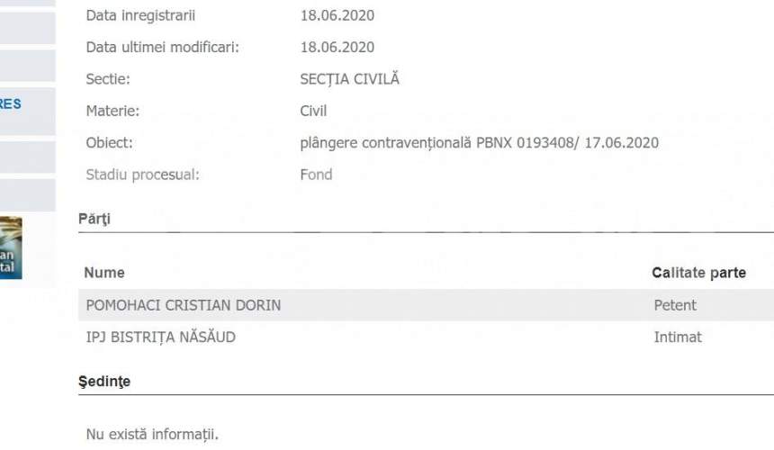 Cristian Pomohaci s-a judecat și cu polițiștii din Tulcea, însă judecătorii i-au respins cererea: "Respinge, ca nefondată, plângerea contravenţională formulată de petentul POMOHACI CRISTIAN DORIN în contradictoriu cu intimatul IPJ TULCEA-SERVICIUL RUTIER. Menţine procesul-verbal de constatare a contravenţiei seria PTLX, nr.046137, încheiat la data de 31.05.2017 de IPJ Tulcea-Serviciul Rutier, ca fiind legal şi temeinic”.