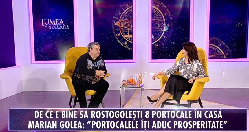 Invitat la „Lumea nevăzută”, emisiune difuzată astăzi, începând cu ora 15.45, la Antena Stars, Marian Golea ne învaţă cum să aducem prosperitatea în viaţa noastră, odată cu intrarea în noul an chinezesc, care începe pe 24 ianuarie. Cum? Rostogolind prin casă opt portocale! “Având forma rotundă şi aurie, portocalele nu-ţi aduc decât prosperitate. Dai drumul la portocale în casă. Avem nevoie de 8 portocale. E bine să le lăsaţi pe jos şi să puneţi nişte copii să dea cu picioarele în ele. Nu e bine să fie 7, pentru că 7 reprezintă cifra furturilor. Acest ritual de a lovi portocalele se poate face în prima săptămână a anului nou chinezesc. După ce aruncăm portocalele pe jos, le mâncăm. Anul nou durează două săptămâni, până la sărbătoarea lanternelor. Şi atunci le putem lăsa pe jos aceste două săptămâni. Dar dacă nu, oricând vrem putem să le mâncăm. De obicei, la restaurante sau la expoziţii sau deschideri de business-uri, o să întâlniţi aceste 8 portocale. Condiţia este că dacă cineva ia o portocală, trebuie să îl laşi să o ia, fără nicio problemă, dar trebuie să fii atent să iei şi tu una. Că din 8 să transformi în 6. Totdeauna trebuie să fie în număr par, cu excepţia lui 2, care înseamnă boală. Dacă ne deschidem un magazin sau o afacere, e bine să ne întâmpinăm clienţii cu 8 portocale. Aceste lucruri se folosesc de zeci de ani, de sute de ani şi ele funcţionează”, explică Marian Golea.