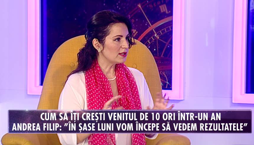 Invitată la „Lumea nevăzută”, emisiune difuzată astăzi, începând cu ora 15.45, la Antena Stars, Andrea Filip, instructor de dezvoltare personală, ne învaţă cum să reprogramăm subconştientul pentru a deveni bogaţi. “Oamenii trebuie să se gândească la oamenii cu care petrec mai mult timp. Să ia o foaie şi un pix şi să scrie cei 10 oameni cu care îşi petrec cea mai mare parte din timpul lor. Persoanele astea trebuie să includă copiii, dacă au familie și stau cu ei, sotul/soţia, soacra, bona copiilor, dacă stă cu ei, vecinele. Deci facem o listă cu cei 10 oameni cu care ne petrecem timpul. Apoi, în dreptul fiecăruia, să scrie câţi bani cred că oamenii ăia câştigă în fiecare lună. Cu aproximaţie. Unii pot spune că bebeluşul lor, de exemplu, nu câştigă nimic. Da, dar el cheltuie. Faptul că se cheltuie pe el o anumită sumă de bani, înseamnă că banii ăia au venit spre bebeluş. Contorizăm practic ce cheltuim pe copilul ăla, ca venit al copilului. La noi nu scădem nimic din sumă, pentru că oricum noi nu ne punem pe lista aia. Iar după aceea, luăm aceste sume, le adunăm şi împărţim la zece şi vedem o anumită cifră”, explică Andrea Filip.