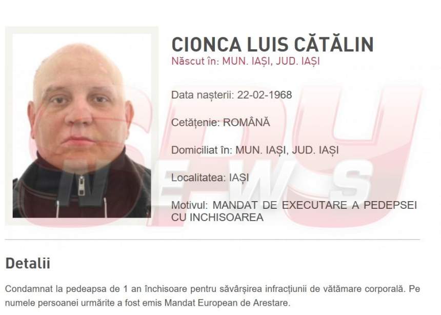 Luis Cătăin Cionca, un infractor din Iaşi dat în urmărire naţională şi, mai nou, pe întregul continent, le râde în nas poliţiştilor.