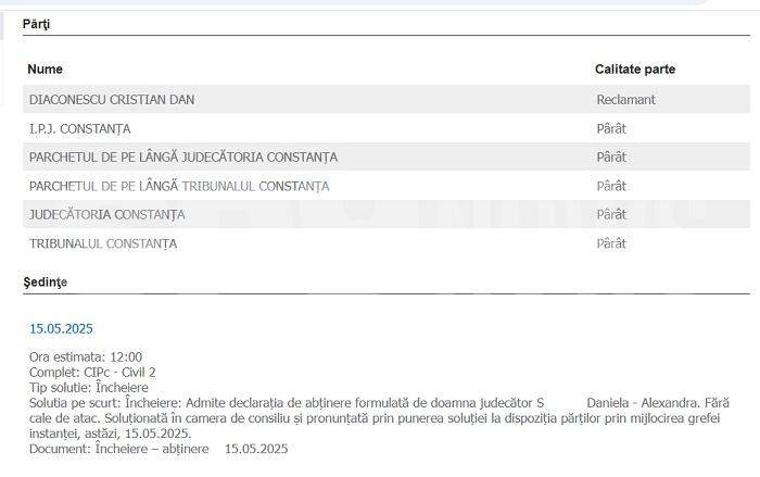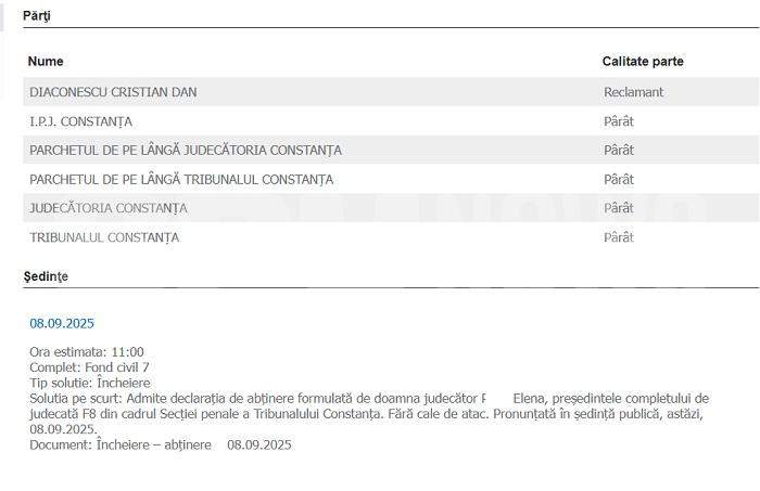 - Aproape toți magistrații de la Tribunalul Constanța au refuzat să îi judece dosarul