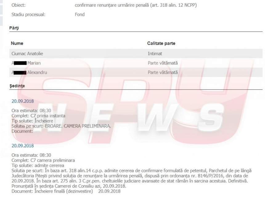 Urmărit penal în două dosare, unul pentru contrabandă cu ţigări, celălalt pentru loviri şi alte violenţe, Tolea s-a trezit cu un cadou din partea procurorilor. Recent, magistraţii de la Parchetul de pe lângă Judecătoria Piteşti au cerut – şi obţinut – confrmarea renunţării la urmărirea penală. Altfel spus, au închis definitiv dosarul. „Admite cererea de confirmare formulată de petentul Parchetul de pe lângă Judecătoria Piteşti privind soluţia de renunţare la urmărirea penală, dispusă prin ordonanţa din data de 20.09.2018. În baza art. 275 alin. 3 C.pr.pen. cheltuielile judiciare avansate de stat rămân în sarcina acestuia. Definitivă". În dosarul respectiv, Tolea era acuzat că a bătut în trafic doi bărbaţi – Alexandru şi Marian A., tată şi fiu -, iar dacă ar fi primit chiar şi o condamnare de câteva luni, sportivul ar fi înfundat puşcăria, fiindcă are experienţă la acest capitol.