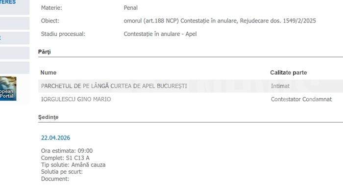 S-a schimbat... modificarea, în procesul lui Mario Iorgulescu: pentru că dosarul picase în mâinile unor judecători nepotriviți, Curtea de Apel București a decis să repartizeze cazul unor alți magistrați.