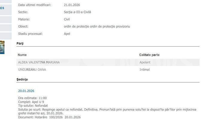 Senatoarea Aldea a atacat hotărârea, iar zilele trecute a primit lovitura de grație: „Respinge apelul ca nefondat. Definitivă”.