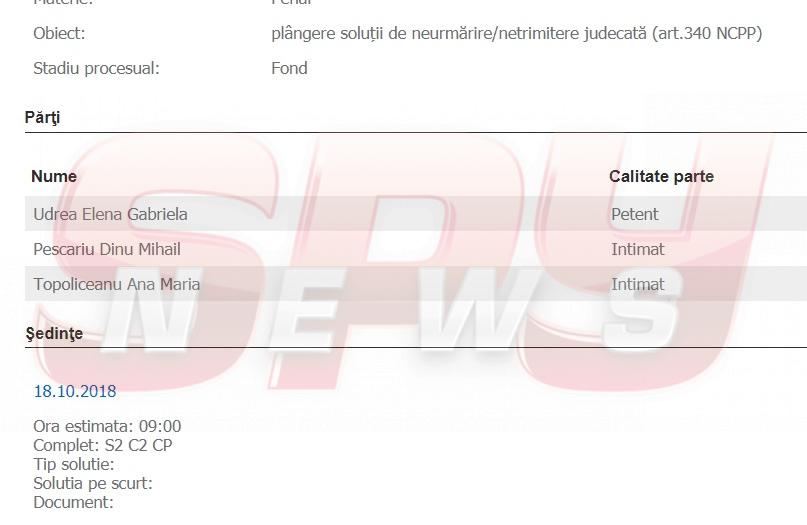 Tocmai din Costa Rica, acolo unde a fost încătuşată în plină stradă, ca orice infractor căutat de poliţie, Elena Udrea şi-a găsit timp să deschidă un nou proces împotriva lui Dinu Pescariu, pe care îl vrea în puşcărie, cu orice preţ. Udrea a solicitat instanţei să dispună anularea documentelor prin care procurorii au decis clasarea dosarului lui Pescariu, solicitând, totodată, trimiterea în judecată a acestuia. Primul termen al procesului va avea loc săptămâna viitoare.
