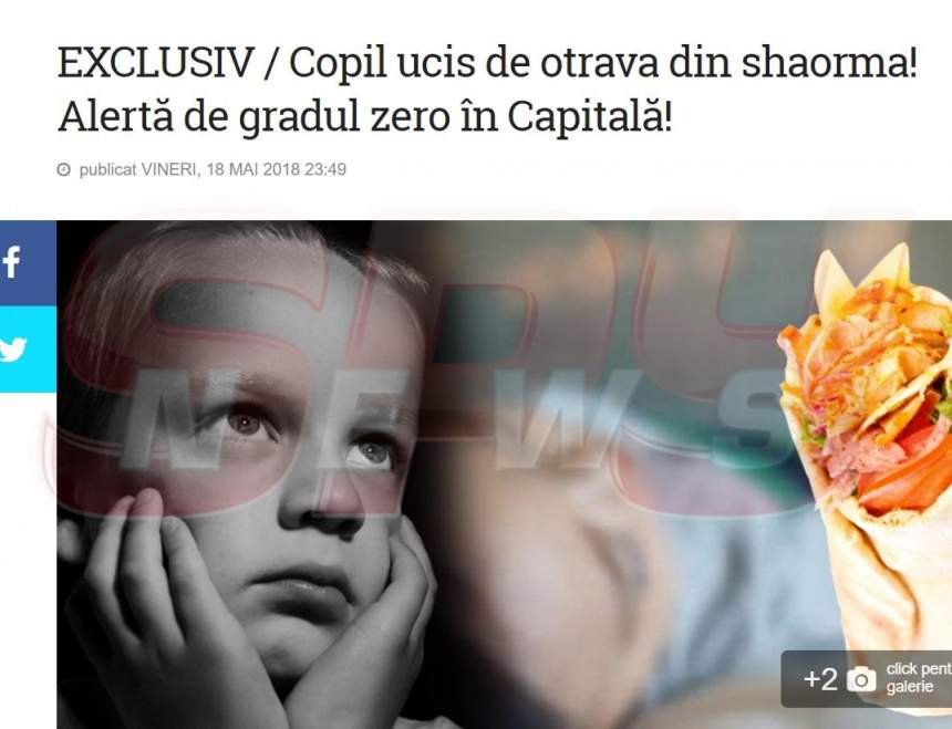- 15.05.2018 - DSVSA Bucureşti a fost sesizată cu privire la faptul că un copil a murit după ce a mâncat shaorma. Nici până ieri, 22 mai, DSVSA Bucureşti nu a emis un comunicat în acest sens, pentru a alerta populaţia!