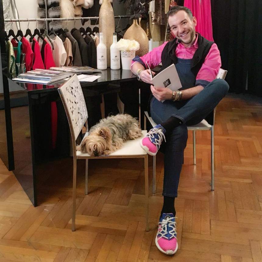 Designerul mărturiseşte că patrupedul iubit l-a ajutat să treacă de o situaţie critică: “Eu am o problemă cu coloana vertebrală şi am căzut într-o zi pe jos, nu puteam să mă mişc absolut deloc. S-a pus pe spate, să îmi încălzească spatele şi a stat două ore şi jumătate nemişcat, pe spatele meu, până am reuşit să mă mişc, să mă duc la telefon şi să sun ambulanţa”.