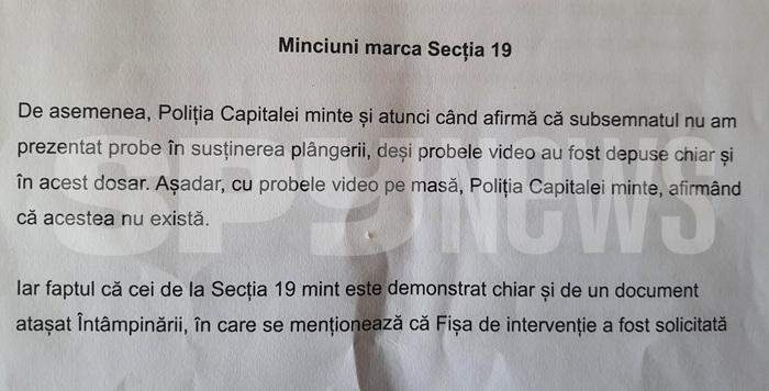 În cadrul procesului în care era contestată amenda de 2.000 de lei, șefii Poliției Capitalei au transmis instanței documente incredibile, în care aceștia au afirmat, în mod neadevărat, că nu a existat nicio înregistrare video realizată de victimă și, mai mult, au depus documente în care se preciza în mod mincinos că nu li s-a adus la cunoștință de vreo faptă penală atunci când victima a sunat la 112. Asta, deși înregistrările video erau atașate la dosar și au fost vizionate de judecători!
