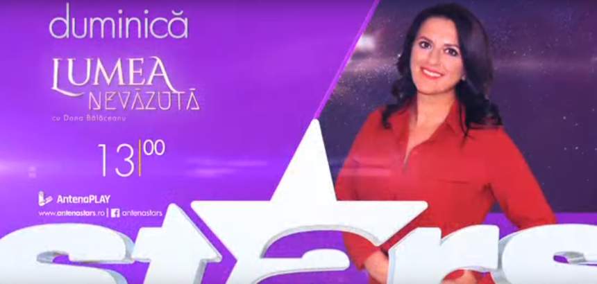 Începând din acestă duminică, Antena Stars prezintă „Lumea nevăzută", emisune care se va difuza saptamanal, in fiecare duminica, la ora 13.00 şi este prezentata de Dana Balaceanu. In fiecare editie vom avea diverse teme care iti arata o alta fata a realitatii tale! Iti dezvaluim o Lume pe care nu ai mai vazut-o! Descifram mistere, demontam mituri, trecem peste hotarele mintii si iti aratam cum functioneaza Universul! Aratam cum treci mai usor peste obstacolele si provocarile vietii, spunem pasii prin care poti atrage succesul, fericirea si abundenta in viata ta! In prima editie vorbim despre destin. Este el scris sau il putem schimba? Putem avea libertate de decizie si de actiune? Invitatii editiei sunt Ramona Popescu, explorator spiritual, si Romeo Popescu, numerolog.