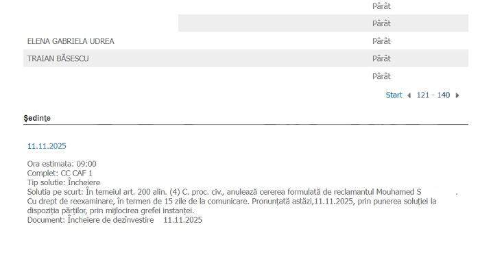 „Solutia pe scurt: În temeiul art. 200 alin. (4) C. proc. civ., anulează cererea formulată de reclamantul Mouhamed S. Cu drept de reexaminare, în termen de 15 zile de la comunicare. Pronunţată astăzi, 11.11.2025, prin punerea soluţiei la dispoziţia părţilor, prin mijlocirea grefei instanţei”, au decis, ieri, magistrații buzoieni.