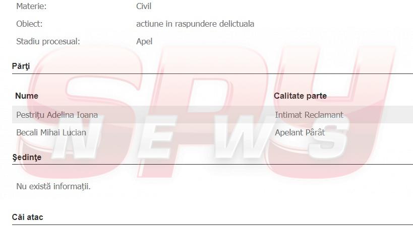 Cu toate că a trecut foarte mult timp de la această sentinţă, Lucian Becali a deschis, recent, un proces împotriva Adelinei, prin care atacă hotărârea dată de Judecătoria Buftea. Aşa că, în loc să stea lângă fetiţa ei, vedeta este nevoită acum să alerge pe la avocaţi şi să demonstreze încă o dată că Lucian Becali a spus despre ea numai aberaţii în spaţiul public.