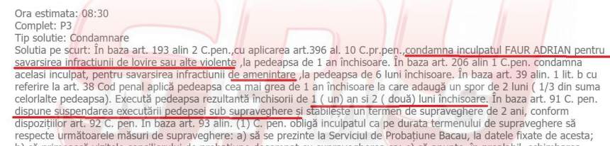 Victima abuzurilor sexuale, al cărei nume am ales că nu îl facem public, din motive lesne de înţeles, a fost violată de un infractor extrem de periculos, Adrian Faur, din Bacău, un individ lăsat slobod printre oameni de judecători şi procurori. Anul trecut, în ianuarie, Faur a fost condamnat la un an şi două luni de închisoare, cu suspendare, după ce a încercat să violeze o fată. Şi, fiindcă victima s-a opus, a călcat-o în picioare şi a tăiat-o cu briceagul, mutilând-o pe viaţă. Pentru că „oamenii legii” nu au fost capabili să probeze tentativa de viol, Faur a fost trimis în judecată pentru loviri şi alte violenţe şi ameninţare. Pentru aceste „mizilicuri”, judecătorii băcăuani i-au dat autorului o pedeapsă cu suspendare, oferindu-i lui Faur ocazia să violeze 24 de copii.