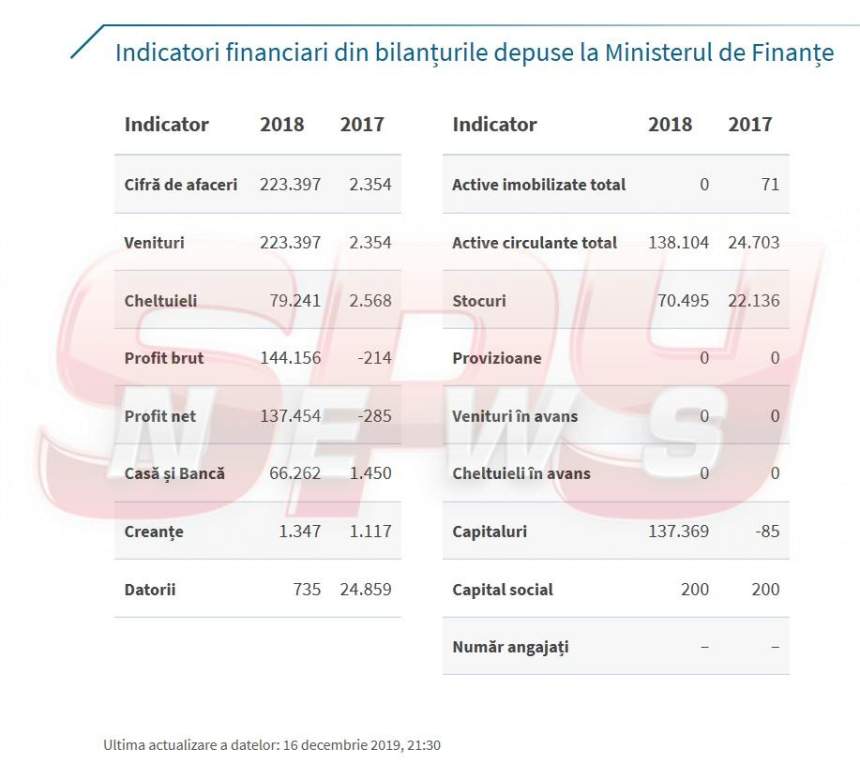 În timp ce poliţiştii şi procurorii sunt într-o vacanţă de sărbători prelungită – reprezentanţii DIICOT au explicat că şefii instituţiei pot fi găsiţi abia săptămâna viitoare, aşadar traficanţii de droguri îşi pot face de cap -, reporterii SPYNEWS au încercat să afle mai multe informaţii despre firma care vinde cannabis oricui, cu un simplu click. Astfel, reporterii noştri au descoperit că firma de apartament a avut în 2017 o cifră de afaceri de 2.354 lei, iar în 2018 de 223.397 lei. În 2018, firma a plătit datorii de 25.000 de lei şi a declarat un profit de 137.454 lei, spre deosebire de 2017, când a înregistrat pierderi.