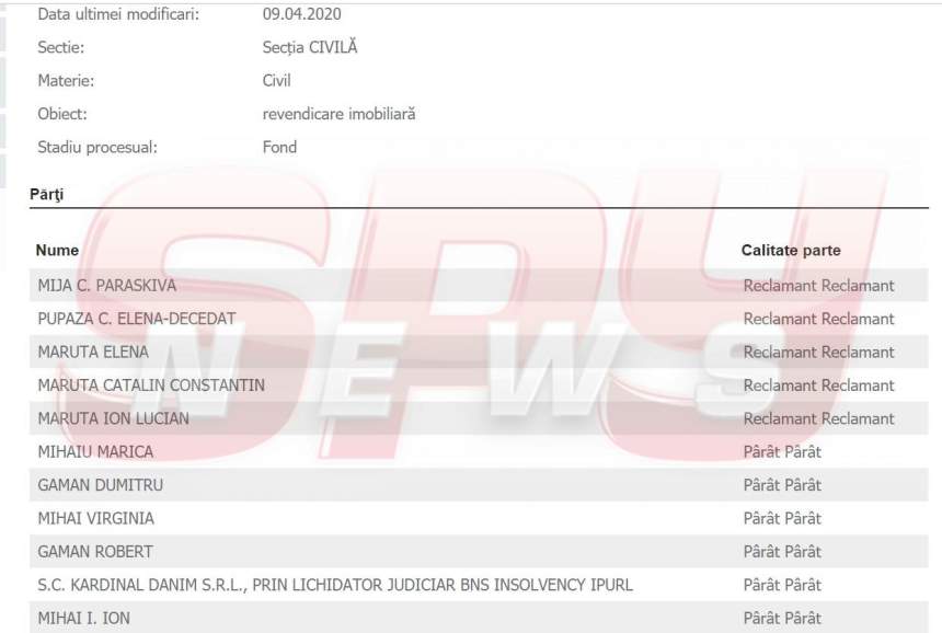 Procesul deschis de prezentatorul TV este suspendat temporar, din cauza stării de urgență, însă, după data de 15 mai, judecătorii vor acorda un termen. În primă instanță, Măruță și rudele sale au câștigat procesul, demonstrând că un teren ocupat abuziv de mai multe persone le aparține. Pe lângă faptul că au fost somați să elibereze imediat cele loturile disputate, pârâții au fost obligați să plătească și chirie pentru perioada în care au ocupat ilegal suprafețele de teren.