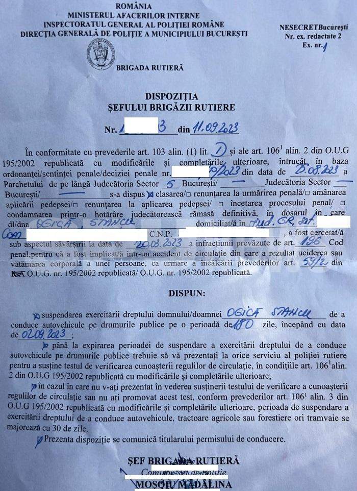 - Totuși, documentul emis de Brigada Rutieră atestă că pe 14 august, când agenții din Giurgiu i-au făcut dosar penal, Ogică avea permis
