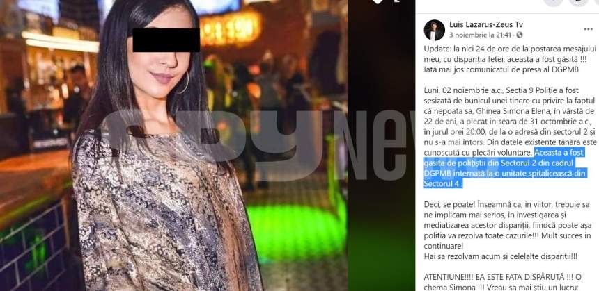 Surse din Poliție au dezvăluit, pentru Spynews.ro, că agenții care au găsit-o pe tânără, după ce aceasta a făcut scandal în urma unei supradoze, au dus-o direct la spitalul de boli nervoase. În mod inexplicabil, aceștia nu au raportat incidentul și nici nu s-au sesizat atunci când au văzut că tânăra pe care o duseseră la balamuc era căutată cu disperare de rude, prieteni și chiar de către colegii lor de la Serviciul Urmăriri. Pe de altă parte, nici angajații spitalului nu s-au obosit să verifice, atunci când Poliția a întrebat dacă aceasta este cumva acolo, așa că Simona a zăcut anonimă, patru zile la rând, pe un pat de spital.