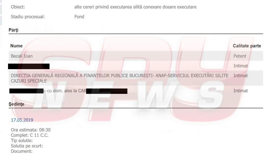 Ioan Becali, alias Giovani, a dat-o în judecată pe fosta amantă, cea care, în urmă cu doar câteva luni a obţinut executarea silită a milionarului, fiindcă acesta a refuzat să plătească pensia alimentară. În dosarul respectiv au fost chemaţi în faţa judecătorilor şi reprezentanţii ANAF, instituţie care este implicată în scandalul pe averea lui Giovani.