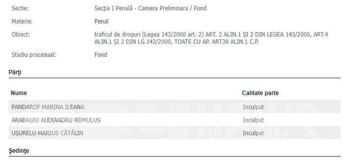Dispune începerea judecății cauzei privind pe inculpații: PANDAROF MARINA ILEANA, necunoscută cu antecedente penale, ARABAGIU ALEXANDRU ROMULUS, necunoscut cu antecedente penale, și UȘURELU MARIUS CĂTĂLIN, necunoscut cu antecedente penale”, a decis instanța.