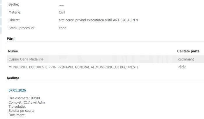 - Oana Cuzino a deschis un proces, pentru a executa silit Primăria Capitalei