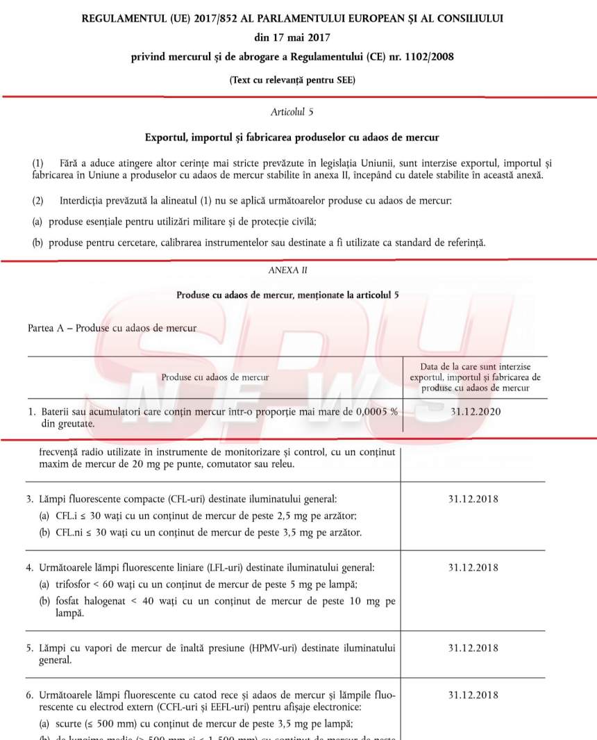 Conform regulamentului amintit, începând cu ianuarie 2019, în UE se interzice fabricarea, importul şi exportul de becuri pe bază de vapori de mercur. (facsimil sus) Asta nu îi împiedică, însă, pe marii importatori din România să aducă TIR-uri întregi cu becurile otrăvitoare. Un jurnalist SPYNEWS care s-a dat drept un client dornic să achiziţioneze 4.000 de becuri cu vapori de mercur a descoperit că importatorii nu au nicio reţinere în a aduce în ţară produsele toxice ale companiilor din Occident. "Avem pe stoc doar o mie de becuri pe bază de vapori de mercur din modeul solicitat de dvs., dar mai aducem de la producător, în aproximativ 30 de zile, dacă faceţi o comandă fermă", a fost răspunsul unuia dintre importatori. Reprezentantul unei alte firme a explicat că nu este nicio problemă cu aducerea în ţară a becurilor buclucaşe şi că acestea nu sunt toxice sau interzise, aşa cum cred unii: "Nu e nicio lege, nu zice nimeni că sunt toxice. Le importăm legal, evident!"