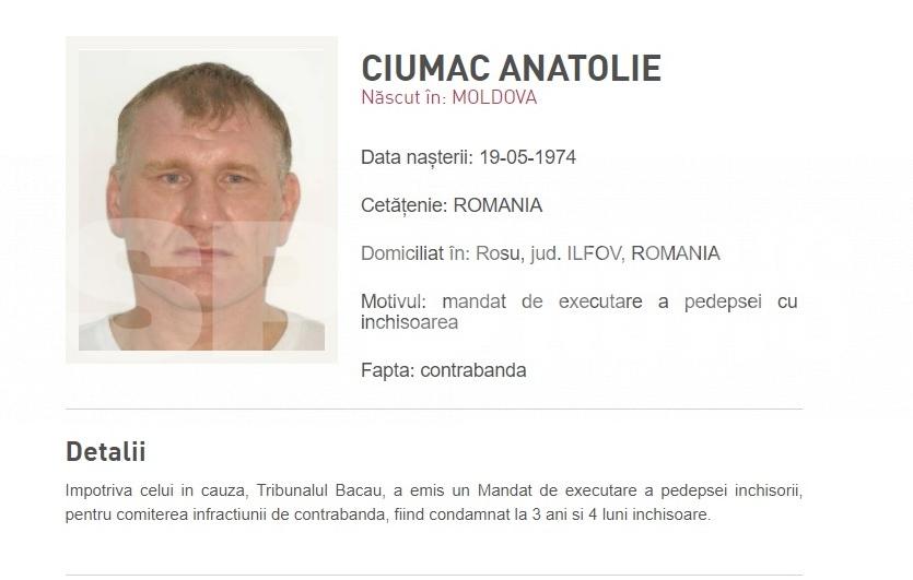 Anatolie Ciumac, alias Tolea, a ajuns cap de afiș pe site-ul Poliției Române, la rubrica „Urmăriți general”, după ce judecătorii din Bacău au dat o sentință definitivă în dosarul de trafic de țigări în care sportivul era acuzat de contrabandă.