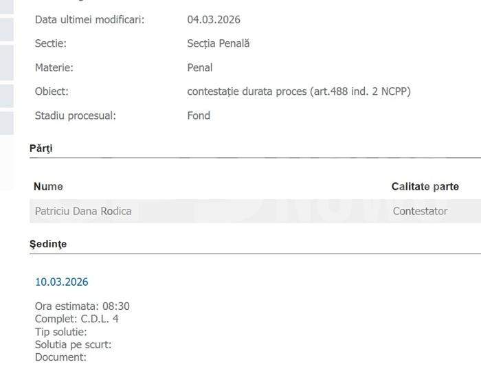 Conform legii, dacă activitatea de urmărire penală sau de judecată „nu se îndeplineşte într-o durată rezonabilă, se poate face contestaţie, solicitându-se accelerarea procedurii”. Întrucât în proces nu a fost depus de Parchet dosarul de urmărire penală, judecătorii au decis să analizeze cererea Danei Patriciu la termenul care va avea loc săptămâna viitoare, pe 10 martie.