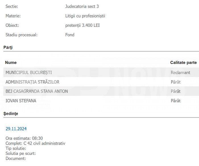 BEJ Anton Stana Casagrandra este chemat în fața magistraților de la Judecătoria Sectorului 3, într-un dosar deschis de Primăria Capitalei, pentru recuperarea sumei de 3.400 de lei. O sumă infimă, dacă ținem cont de faptul că executorul respectiv a agonisit niște averi colosale, prin încălcarea legii, după cum susțin procurorii Direcției Naționale Anticorupție.