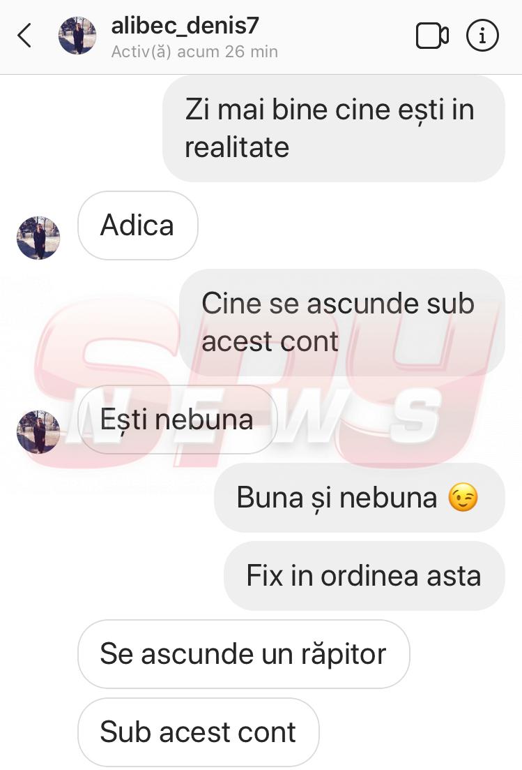 Ieri, SPYNEWS a dezvăluit că un individ cu probleme la "mansardă" a creat un cont fals, cu numele Denis Alibec, şi abordează diferite vedete şi fete de oraş, pe care încearcă să le seducă. (Vezi articolul aici). Unele dintre tinere au fost chiar şantajate de presupusul Alibec, individul avertizându-le că va trimite discuţiile perverse partenerilor acestora, pentru a le distruge relaţiile sau căsniciile.