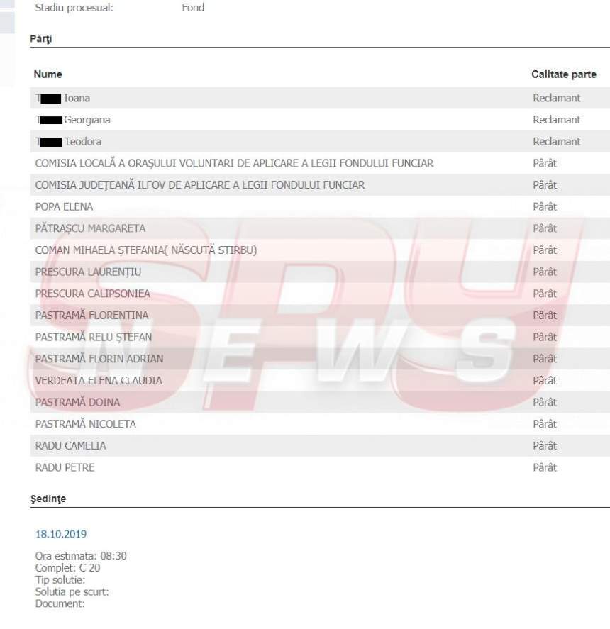 Toată familia Pastramă este chemată în faţa judecătorilor, pentru a împărţi nişte terenuri pentru care au ajuns să se certe cu vecinii.