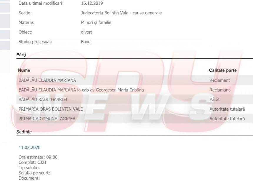 Războiul dintre Gabi Bădălău şi Claudia Pătrăşcanu ia o turnură neaşteptată! Avem detalii exclusive din dosarul în care Claudia Pătrășcanu își acuză soțul de concediere abuzivă, conform portalului instanţelor de judecată, și despre cum vrea să își facă artista dreptate la tribunal.
