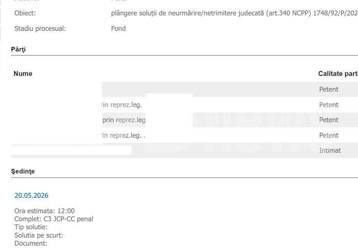 Într-un alt proces, judecătorii au impus Parchetului să finalizeze ancheta răpirii în următoarele nouă luni. Însă, într-un proces similar, Parchetul n-a respectat termenul. „Admite contestația privind durata procesului penal formulată de contestatoarea ... . Stabilește un termen de 9 luni pentru finalizarea urmăririi penale în dosarul nr. 17..8/92/P/2024 al Parchetului de pe lângă Judecătoria Deva, termen în care o nouă contestație nu poate fi formulată”, a decis instanța, recent.