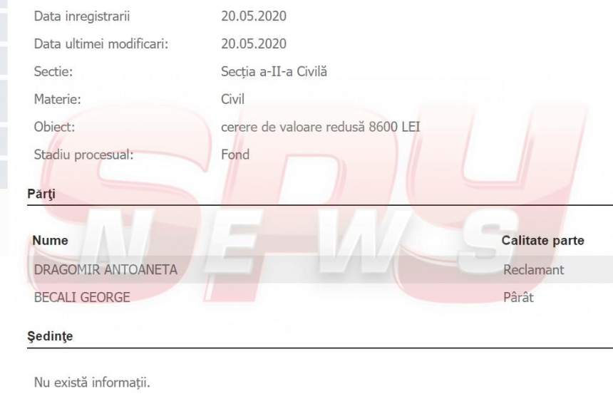 În urmă cu doi ani, Antoaneta Dragomir a câştigat definitiv procesul şi a obţinut executarea silită a afaceristului, care îi datorează femeii 50.000 de euro. Becali a contestat executarea şi a câştigat în 2019, obţinând o amânare pe termen nelimitat şi păstrând, temporar, cei 50.000 de euro.