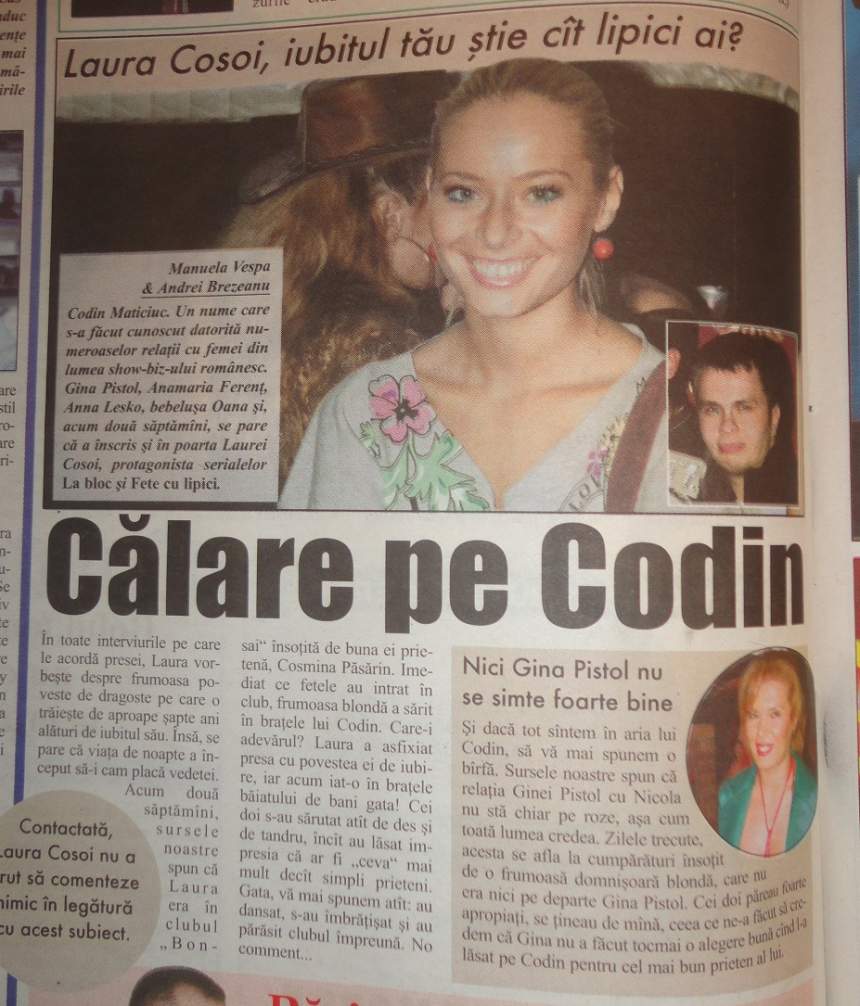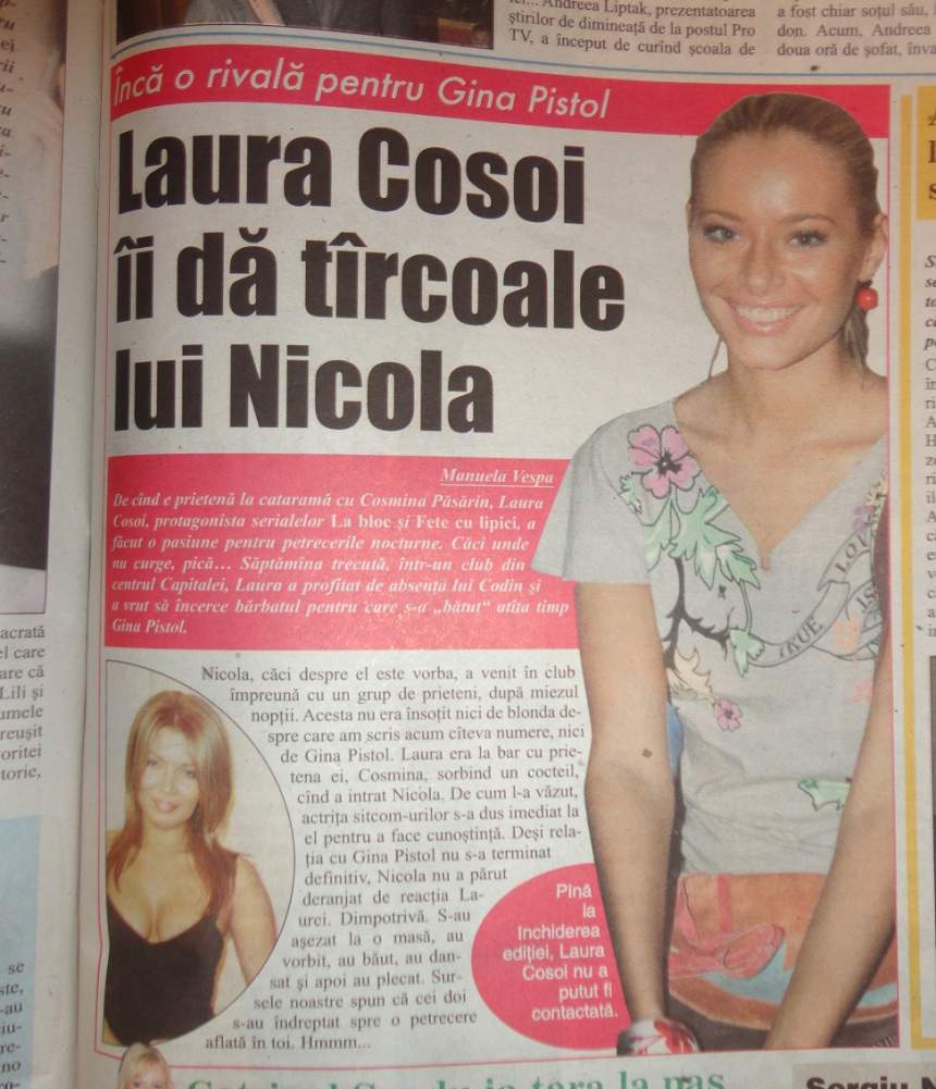 Prin 2006, Laura Cosoi făcuse o pasiune pentru iubiţii Ginei. După o aventură de câteva săptămâni cu Maticiuc, actriţa s-a orientat către Nicola, care avea în perioada aceea o relaţie cu Gina Pistol. Fermecătoarea actriţă a pus ochii pe Nicola într-un club unde păreau că se simt foarte bine unul în compania celuilalt. Atât de bine, încât în mijlocul party-ului au plecat împreună spre o destinaţie necunoscută.