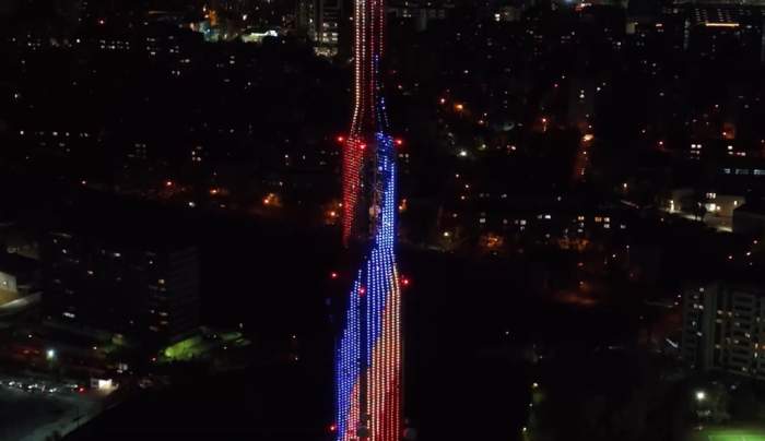 Tricolorul României a apărut pe unul dintre cele mai înalte turnuri din București, la peste 200 de metri