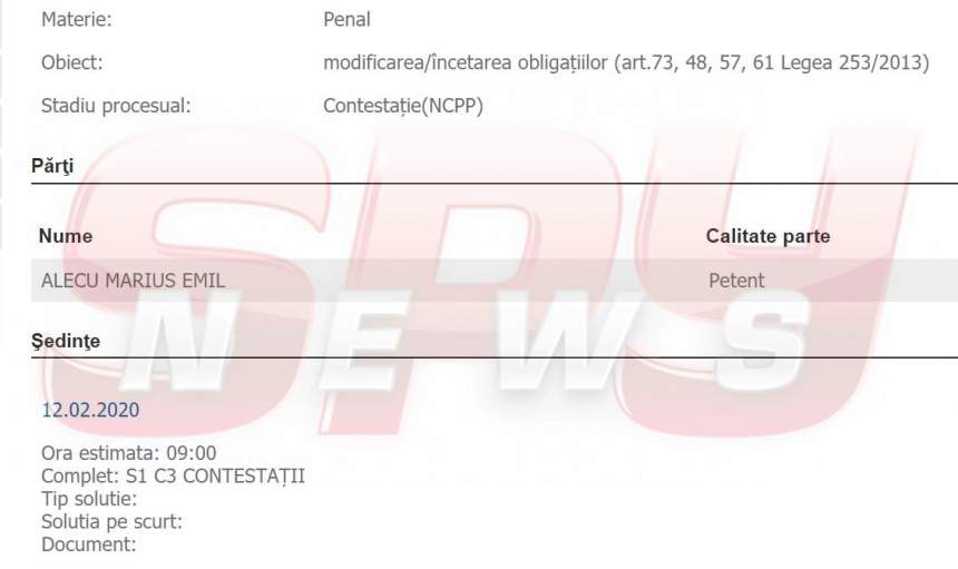 “Respinge cererea formulată de petentul-condamnat Alecu Marius Emil, privind încetarea obligaţiei de a nu păsări teritoriul României, fără acordul instanţei, stabilită prin Sentinţa penală nr. 647/24.03.2017, pronunţată de Tribunalul Bucureşti – Secţia I Penală, definitivă prin Decizia penală nr. 1443/24.10.2017, pronunţată de Curtea de Apel Bucureşti- Secţia I Penală, ca neîntemeiată. În baza art. 276 alin. 1 C. proc. pen., obligă pe petent la plata sumei de 150 lei, cheltuieli judiciare avansate de stat”, a decis Tribunalul Bucureşti, în urmă cu o lună. Dacă judecătorii de la Curtea de Apel îi vor admite cererea, Bebino va putea părăsi imediat ţara şi, cel mai probabil, le va trimite nişte cărţi poştale cu plaje însorite procurorilor care îl cercetează în prezent pentru că a încercat să ucidă un alt interlop.