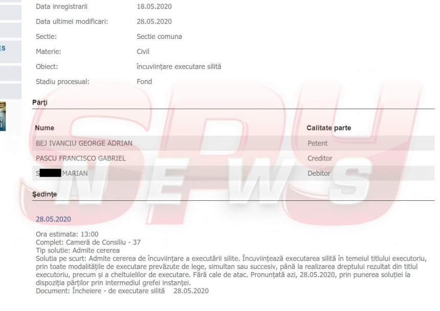 Astfel, după ce au analizat probele depuse la dosar, magistrații au dispus: „Admite cererea de încuviinţare a executării silite. Încuviinţează executarea silită în temeiul titlului executoriu, prin toate modalităţile de executare prevăzute de lege, simultan sau succesiv, până la realizarea dreptului rezultat din titlul executoriu, precum şi a cheltuielilor de executare. Fără cale de atac”.