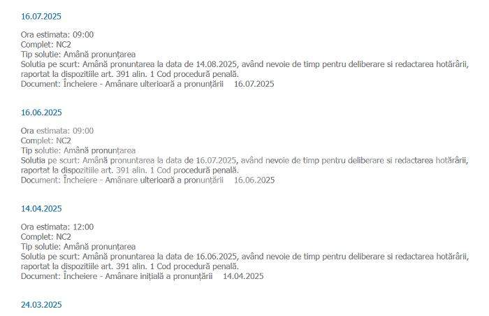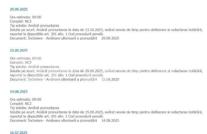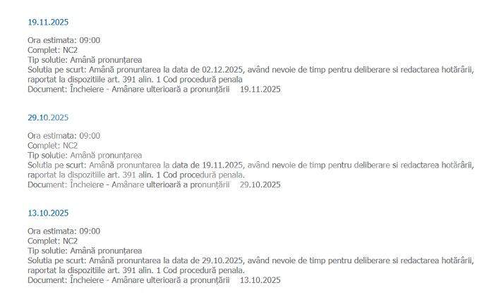 În condițile în care unele fapte sunt aproape prescrise în dosarul trimis în instanță în 2021, magistrații nu au avut timp, nouă luni, ca să redacteze hotărârea. Așa că, din luna aprilie a acestuia an, când fusese anunțată hotărârea, a amânat de zece ori pronunțarea care, se pare, ar putea fi publicată pe 19 decembrie.