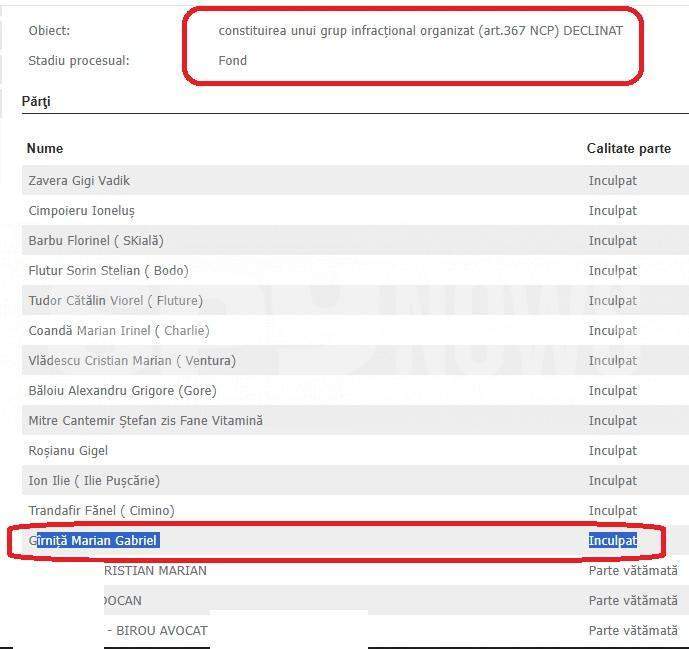 Totodată, inculpatul Gîrniţă Marian Gabriel a susţinut în faţa procurorului că a avut la cunoştinţă măsurile de supraveghere speciale dispuse în perioada arestării preventive faţă de inculpaţii Zavera Gigi Vadik, Cimpoeru Ioneluş, Ion Ilie, Roşianu Gigel, Vlădescu Cristian Marian, Mitre Cantemir Ştefan şi Băloiu Alexandru Grigore”, se preciza în rechizitoriu.
