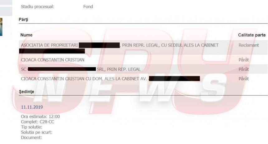 Asasinul Elodiei a fost chemat în judecată de asociaţia de proprietari şi în urmă cu doi ani, din acelaşi motiv. Atunci, judecătorii au decis: „Admite cererea de chemare în judecată formulată de reclamanta Asociaţia de Proprietari ... în contradictoriu cu pârâtul Cioacă Constantin Cristian având ca obiect cerere de valoare redusă. Obligă pârâtul la plata sumei de 9610,79 lei cheltuieli de întreţinere şi penalităţi, fond rulment. Executorie”.