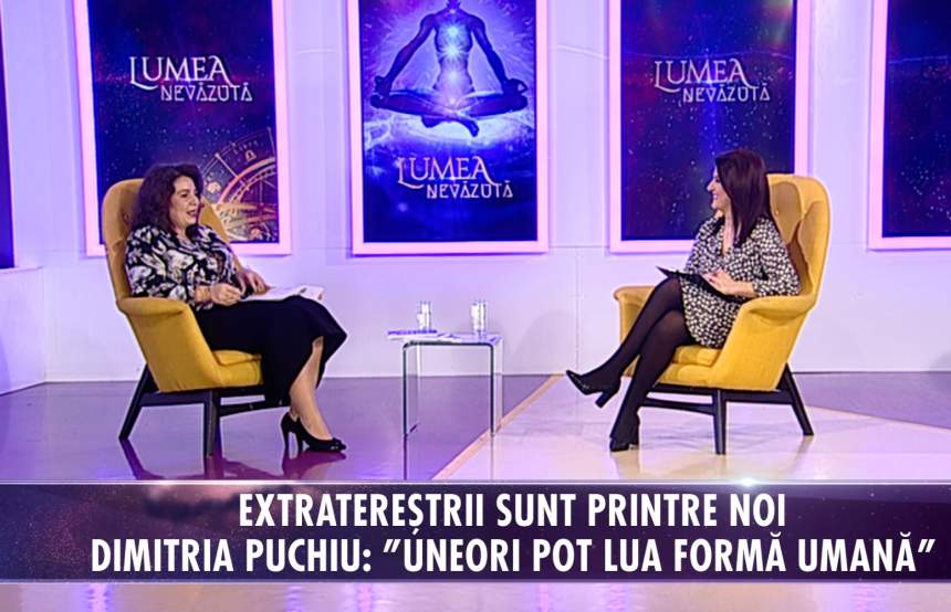 Invitată la „Lumea nevăzută”, emisiune difuzată astăzi, începând cu ora 15.45, la Antena Stars, Dimitria Puchiu, specialist în informaţie energetică şi extrasenzorial, vorbeşte despre extratereştri, cum arată aceştia, când îşi fac apariţia şi ce vor de la noi. “Uneori pot lua şi formă umană, foarte discret, nici nu îţi poţi da seama lângă cine stai. Dar aş vrea ca telespectatorii să înţeleagă din start că şi această apariţie a lor în sistem fizic, de interacţiune fizică, nu ar trebui să ne îngrijoreze pentru că nu este vorba de o invazie. Aşa cum şi ei ne-au spus: Noi suntem aici dintotdeauna, numai că acum abia conştientizaţi prezenţa noastră, nu înseamnă că noi am apărut ieri pe planeta voastră. Sunt aici de când Pământul. Iar ca înfăţişare, au forme foarte diferite. De exemplu, în Polovraci, există un loc pe care eu l-am descoperit, un loc pe care eu l-am numit Templul Extratereştrilor, având în vedere că acolo, cam de fiecare dată când merg, descopăr că se creează de fiecare dată o conexiune. Nu neapărat că mi-o doresc eu. Cerurile se deschid pe anumite frecvenţe astfel încât îmi permit comunicarea cu diverse civilizaţii extraterestre.