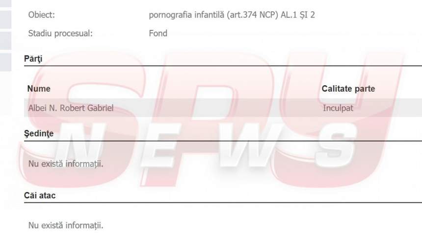 Robert Gabriel Albei, un traficant de droguri din Călăraşi condamnat la un an şi patru luni, cu suspendare, în urmă cu două săptămâni, a profitat de faptul că judecătorii l-au lăsat în libertate şi a mai săvârşit o infracţiune. De această dată, nu a mai vândut „moarte albă” copiilor, ci a filmat un minor în ipostaze indecente şi a făcut publice imaginile, motiv pentru care săptămâna trecută s-a ales cu un nou dosar penal, pentru pornografie infantilă.