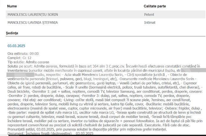 - Fostul soț, fost comisar-șef DGA, făcuse inventarul bunurilor, pentru partaj