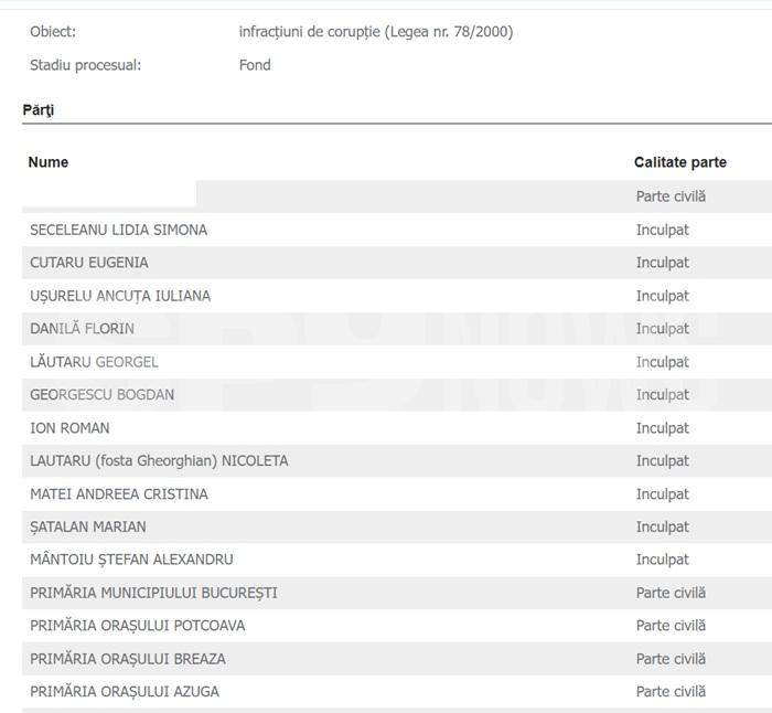 Deși la început erau doar ele acuzate, mai nou, pe portalul instanțelor de judecată există două dosare distincte care vizează fapte de corupție, iar numărul inculpaților este impresionant. Pe lista părților vătămate se află, pe lângă persoane fizice, și instituții publice, precum primării, dar și organizații și societăți comerciale.