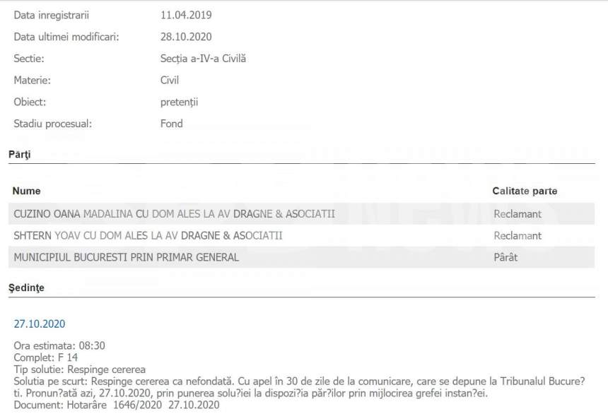 - Oana Cuzino și milionarul Yoav Shtern au pierdut prima luptă cu Primăriei Capitalei