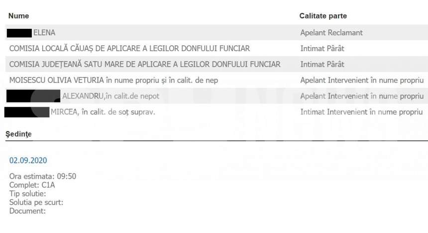 Conform regulamentului de aplicare a legilor fondului funciar, „Comisia pentru aplicarea fondului funciar preia şi analizează cererile depuse în conformitate cu prevederile legii, pentru reconstituirea dreptului de proprietate asupra terenurilor agricole şi celor forestiere, cu excepţia celor formulate de comune, oraşe sau municipii”. Însă, în condițiile în care reclamanții nu sunt mulțumiți de verdictul comisiei, se pot adresa instanței - situație în care a ajuns și Olivia Steer, în calitate de moștenitoare.