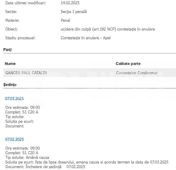 Anul trecut, Paul Gancea, care a primit 6 ai și 4 luni de pușcărie în dosarul Colectiv, a solicitat revizuirea dosarului, însă n-a avut noroc, așa că a rămas în spatele gratiilor.