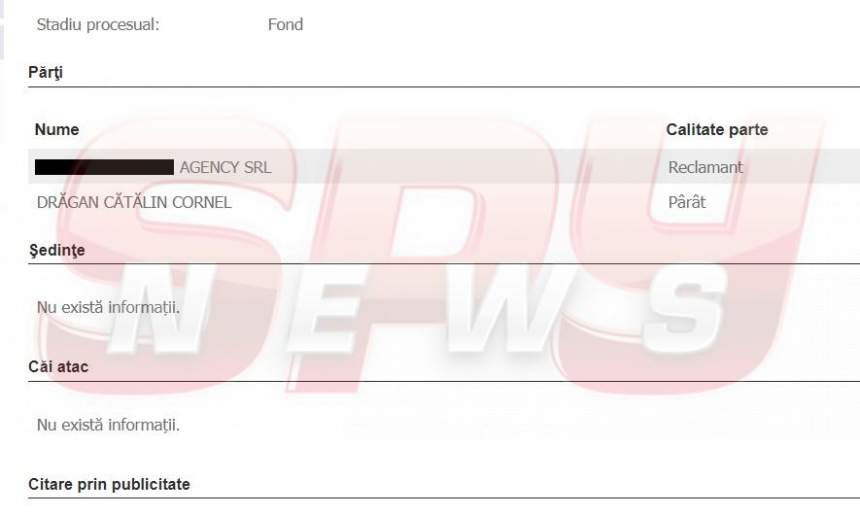 Cătălin Cornel Drăgan (30 de ani) este citat în fața judecătorilor din Brăila într-un dosar în care este acuzat că a înșelat o companie, ”uitând” să-și achite datoriile către aceasta. Astfel, pe 23 aprilie, societatea comercială a deschis un proces în care a solicitat executarea silită a debitorului, primul termen urmând a fi stabilit peste câteva săptămâni.