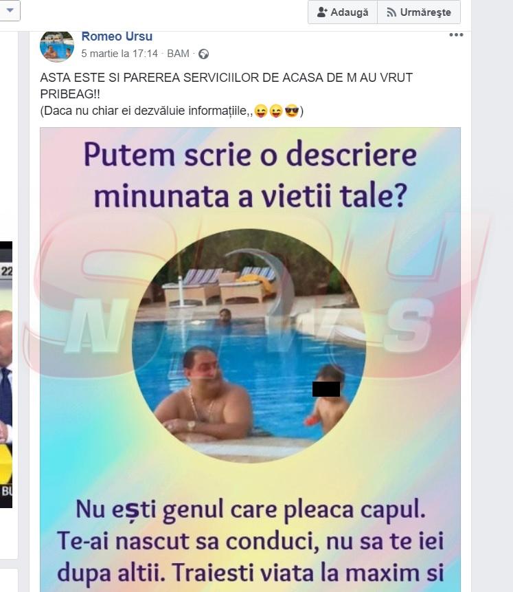 Romeo Ursu, alias Boenică, a făcut, recent, o aroganţă de zile mari în spaţiul virtual, unde a postat un mesaj pentru poliţiştii care încearcă să îl prindă, de ani buni. Interlopul dat în urmărire a explicat că se simte un om împlinit, deoarece este "departe de intelectualii din România" şi stă în Iordania, alături de copiii şi nepoţii lui, "liber şi sănătos".
