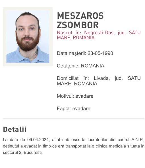Despre evadarea criminalului, procurorii spuneau, în urmă cu doi ani: „La data de 09.04.2024, în jurul orei 15:00, profitând de neatenția organelor de poliție penitenciară însărcinate cu paza sa și prin acționarea sistemelor de deschidere a ușilor de acces ale autosanitarei cu care a fost transportat la o clinică din mun. București, a evadat din starea legală de deținere, fugind din autosanitara sus-menționată, fiind ulterior depistat la data de 10.04.2024 pe raza mun. Oradea, jud. Bihor”.
