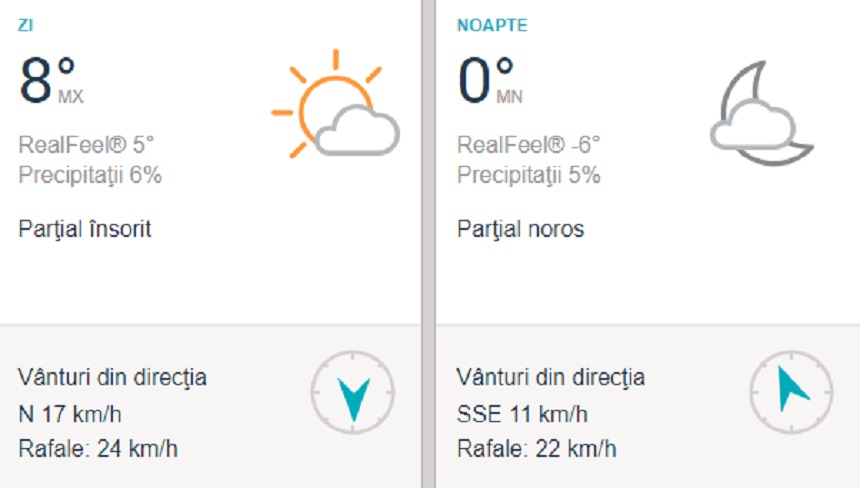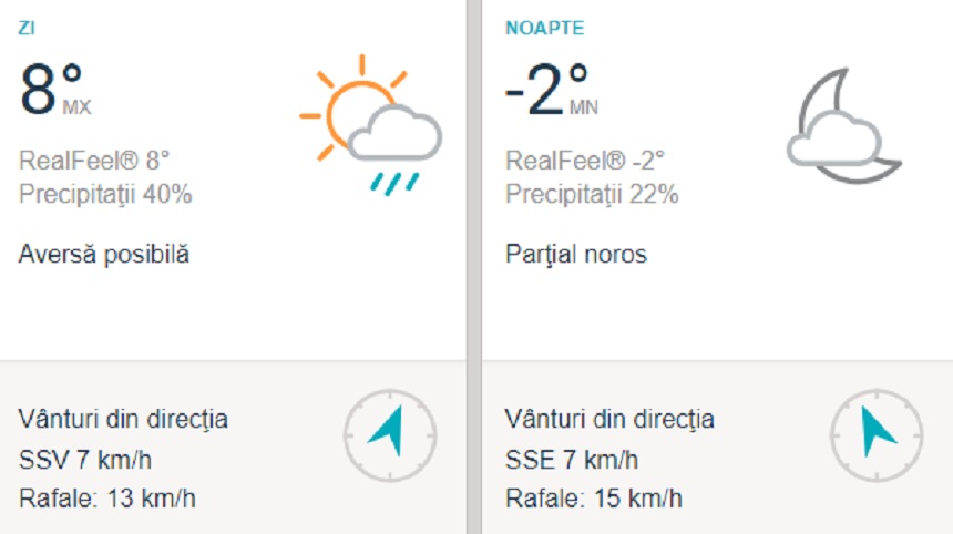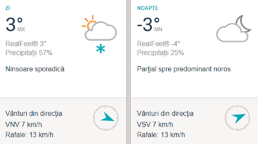 În cealaltă parte a ţării, în Bihor, temperaturile vor fi ridicate, iar soarele va străluci toată ziua. Vor fi 8 grade Celsius.